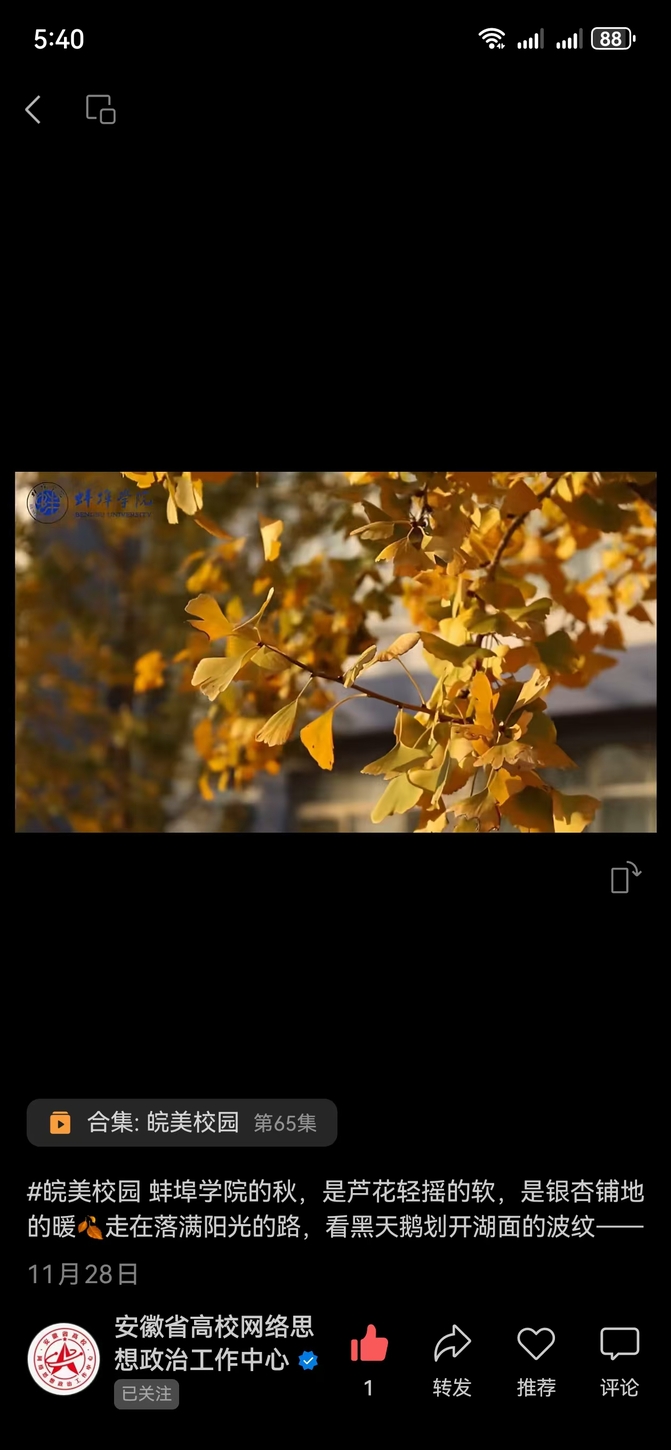 【安徽省高校网络思想政治工作中心】【皖美校园】蚌院的秋