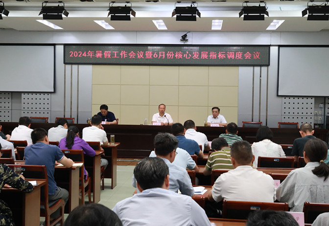 为部署推进暑期工作,强化核心发展指标调度,7月2日下午,学校召开暑期工作暨6月份核心发展指标调度会。党委副书记、院长孙艳辉主持会议并讲话;党委副书记韦文联,党委委员、副院长郭有强,全体处级干部参加会议。