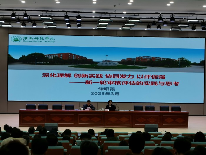 为深入推动新一轮本科教育教学审核评估自评自建工作,3月6日上午,beat365在学术报告厅举办一场专题讲座。淮南师范学院机械与电气工程学院党委书记储昭霞博士应邀作《深化理解创新实践协同发力以评促强—新一轮审核评估的实践与思考》专题报告。讲座由党委委员、副院长张尔桂主持。各职能部门、二级学院科级及以上干部、专业负责人、教研室主任、骨干教师和学生代表聆听了报告。
