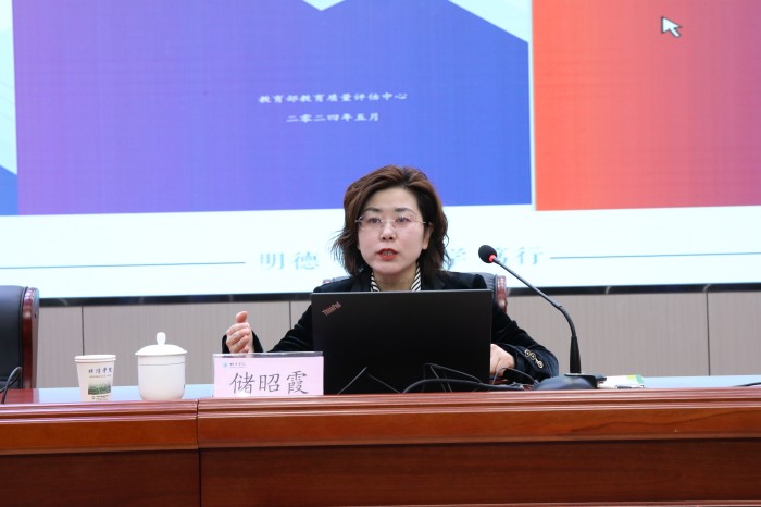 储昭霞围绕“新在哪里:审核评估内涵要义”“怎么准备:学校自评自建重点”“怎么迎评:迎评工作注意事项”三个核心方面,全面深入地介绍了新一轮审核评估的新理念、新要求和新方法,阐述了学校各个层面如何有效开展自评自建工作,以及迎评工作的各个环节和需要注意的事项。