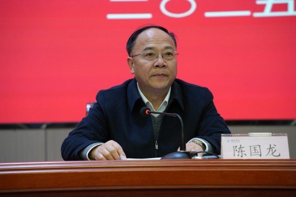 陈国龙在讲话中指出,做好新一轮本科教育教学审核评估各项工作,是贯彻落实中央关于深化教育评价改革的重要举措,是改进本科教育教学工作的内在需要,是构建中国特色高等教育质量保障体系的紧迫任务,是顺应高等教育发展趋势的必然选择,关乎践行“为党育人、为国育才”的初心使命,关乎学校的声誉和形象,关乎学校的健康持续发展。全校上下认识上要再深化,对审核评估的内涵要义进行再学习,对审核评估自评自建工作进行再审视,以更高站位凝聚共识、统一行动;行动上再聚焦,聚焦短板弱项,聚焦任务安排,聚焦落地见效,以更高站位推动各项任务落地见效;责任上再压实,压紧压实责任全链条,牢固树立全校上下一盘棋,以更强烈的使命担当推动形成浓厚的评建氛围。