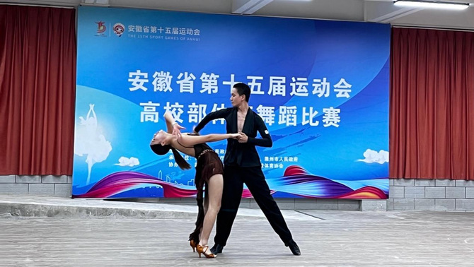 2022年校体育舞蹈队参加安徽省第十五届运动会高校部体育舞蹈比赛甲组双人拉丁两支舞第二名。