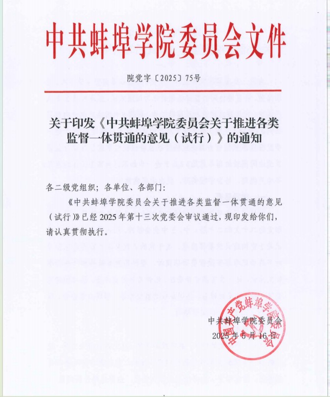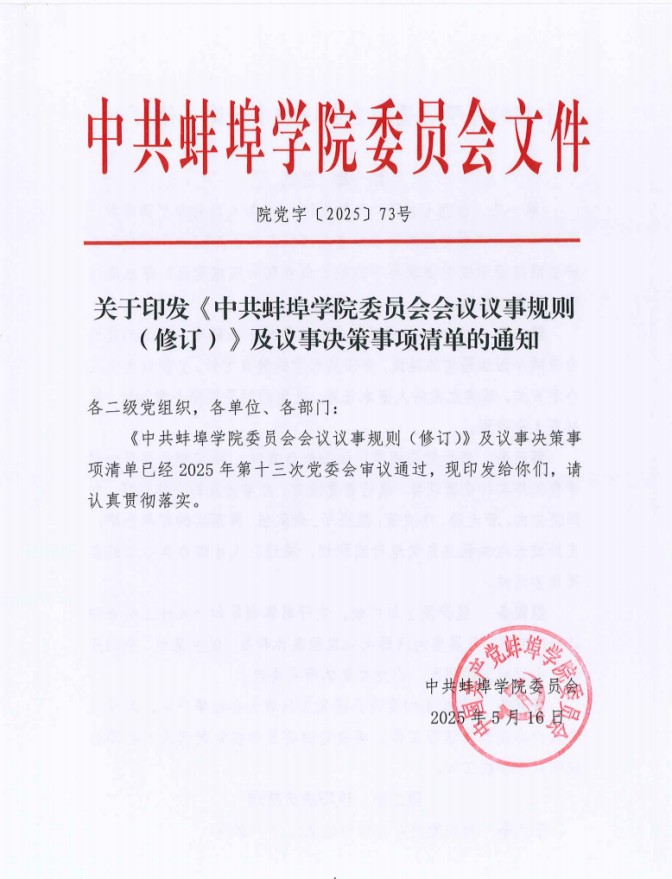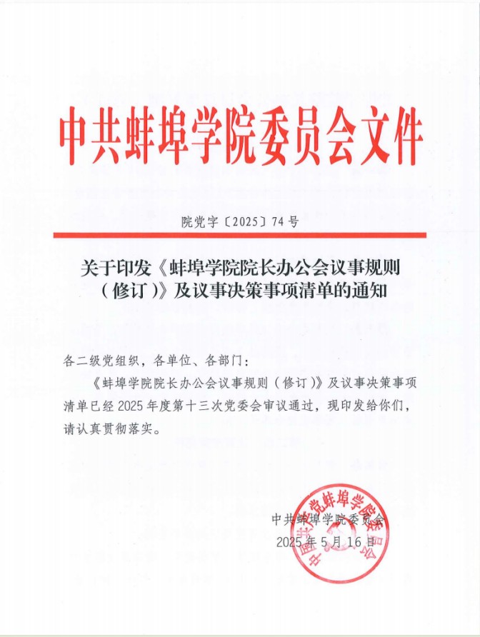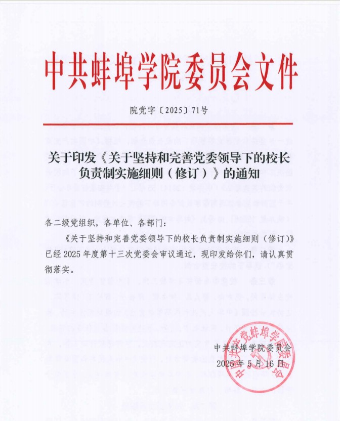 健全完善工作运行机制。修订《关于坚持和完善党委领导下的校长负责制实施细则》,明确了校党委、党委书记、校长的主要职责;修订了《beat365在线体育官网登录入口“三重一大”事项决策实施办法》《中共beat365在线体育官网登录入口委员会议事规则》《beat365在线体育官网登录入口院长办公议事规则》及议事决策事项清单,全面厘清了党委会、院长办公会议事边界。修订了《beat365在线体育官网登录入口合同管理办法》《beat365在线体育官网登录入口印章管理办法》,进一步规范了学校各级各类印章和合同的刻制、管理、审批和使用。开展了校内非常设机构动态调整及备案,加强校内非常设机构运行情况监督,确保非常设机构作用发挥。