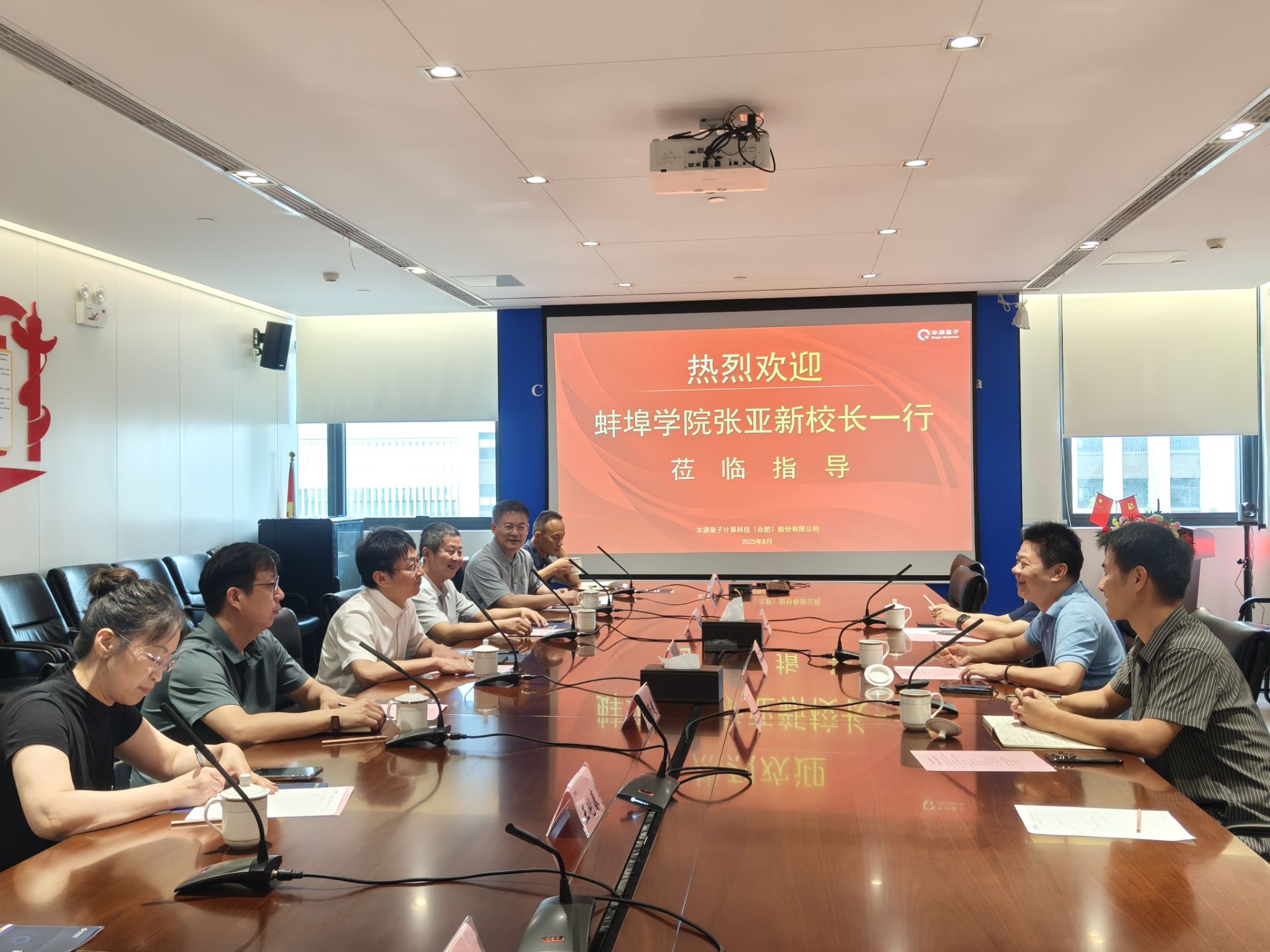 为进一步推动校地、校企合作,8月1日上午,校党委副书记、校长张亚新率队赴本源量子计算科技(合肥)有限公司调研交流。本源量子创始人、首席科学家郭国平等热情接待了张亚新一行,校党委委员、纪委书记杨安成参加调研。