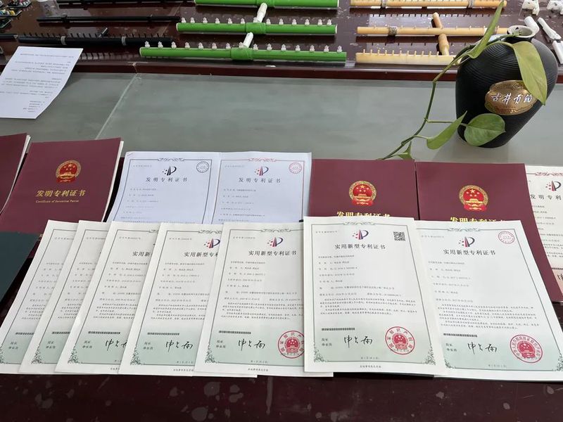 他将记者领到会议室。办公桌上的一侧,按照产品三次迭代升级的顺序,密密麻麻铺满了储水控制盒、芯片、喷淋器等零配件;另一侧则是各种实用新型专利证书。记者现场清点发现,关于这一产品的国家专利共有7项,周本原均是第一发明人,其参与的发明专利共计20多项。