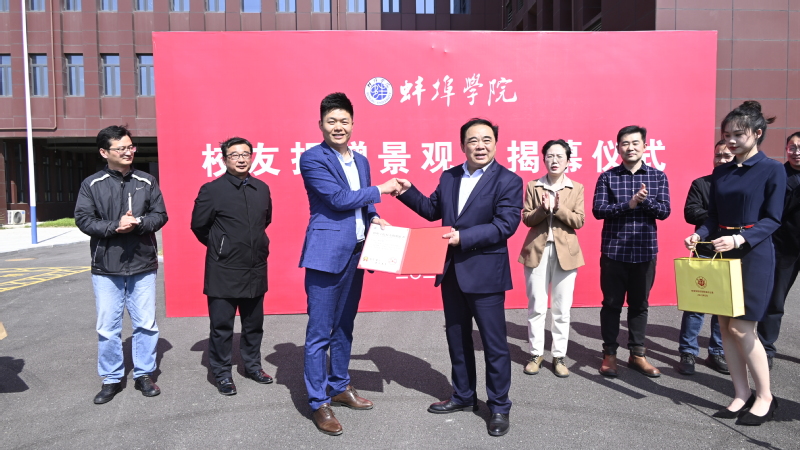 捐赠的景观石采自灵璧,高约3.5米,重达5吨,正面镌刻着“立德树人”字样,是学校践行“立育人之德 树有德之人”的体现,彰显了beat365“笃学 重行 修德 立才”的校训精神。校党委副书记韦文联和校友陈伦权共同为校训石揭幕,向陈伦权颁发捐赠证书及纪念品并合影留念。