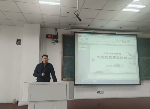 本次思政讲座不仅巩固了校友与母校之间的情感桥梁,也搭建了在校生和校友沟通交流的优质平台,进一步落实校友协同育人理念,今后经济与管理学院还将继续邀请更多优秀校友走进思政课堂,发挥优秀校友榜样引领作用,助力学生成长成才和学校高质量发展。(撰稿:杨帆;编辑:季园园;审核:杨晓秋)