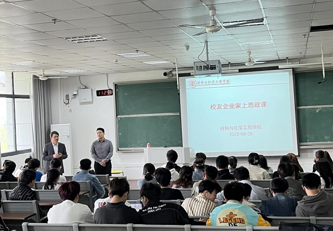 为深入贯彻落实三全育人理念,强化校地协同育人,拓展思政教育新途径,增强思想教育的针对性,发挥优秀校友示范引领作用,4月28日上午,材料与化学工程学院在G305举办校友企业家讲思政课活动,2016届优秀校友毛长军开展题为“立鸿鹄志,做奋斗者”的讲座,讲座由院党委副书记朱银邦主持,2020级部分学生参与活动。