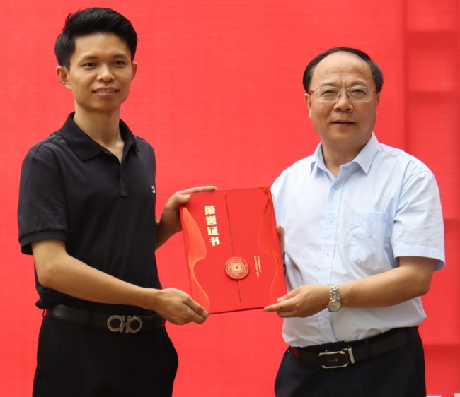 陈国龙和校友刘欢接共同为景观石揭幕,揭幕揭开的不仅是刻有“淮河文化研究中心”字样的灵璧石,更是校友和母校的深厚情谊。陈国龙代表学校接受捐赠并为刘欢接颁发捐赠证书。(撰稿:王婷婷;审核:赵思莉 吴长法)