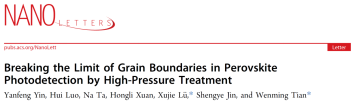 尹延峰长期从事卤化物钙钛矿载流子的光电转换动力学研究。近期,他以第一作者身份在NanoLetters(中国科学院化学类一区,影响因子9.1,Top期刊)、JACSAu(中国科学院一区,影响因子8.7,Top期刊)两大国际权威期刊发表重要成果。研究围绕高压处理技术对钙钛矿薄膜的结构与性能调控展开,通过高压处理,成功优化材料晶界结构、强化内部氢键作用,显著提升了钙钛矿材料的载流子输运能力与环境稳定性,为高性能、高稳定钙钛矿光电器件的研发提供了全新技术路径,相关成果具有重要的学术价值与应用前景,也直接助力beat365电子信息学科在前沿光电材料与器件方向上的特色发展。